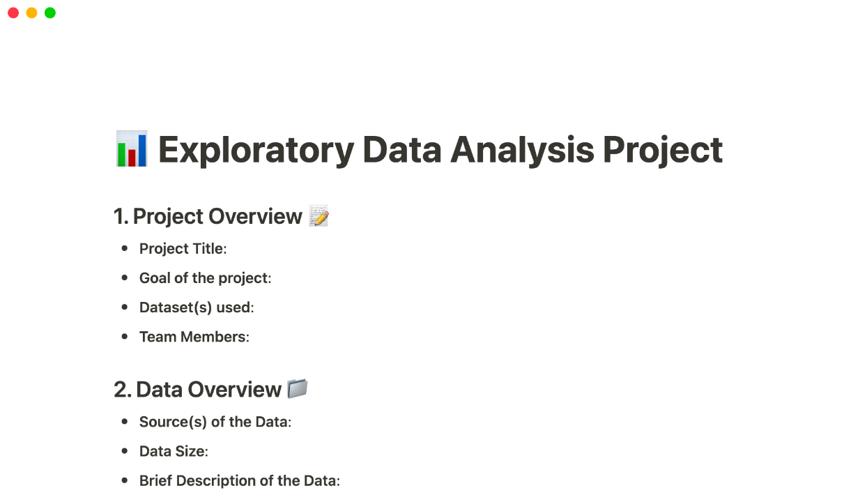 The Notion template benefits individuals, teams, and businesses by providing an organized and complete framework for an Exploratory Data Analysis project. It streamlines the process, ensuring that all critical processes are completed and documented, and it promotes cooperation by providing a centralized platform for team members to collaborate and track progress. Using this template will result in higher productivity, better organization, and improved communication among team members throughout the EDA project.