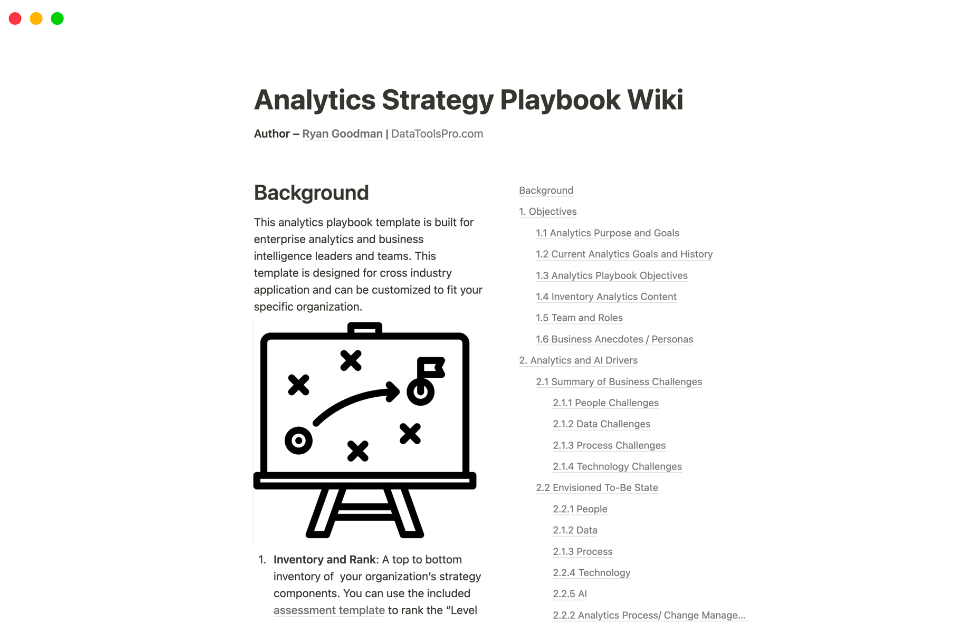 This analytics playbook template is intended for enterprise analytics and business intelligence executives and teams. It is also intended for cross-industry use and can be customized to suit your specific organization.