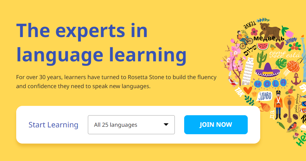 Rosetta Stone ($12/month): These immersive language program provide bite-sized sessions with a focus on listening and speaking rather than explaining or translating. The content is clear and professional, and you may participate in online tutoring sessions via the app.