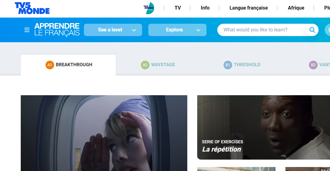 Learn French TV5MONDE (Free): Anyone looking to learn French should download the free app from the French-language TV channel TV5MONDE. You can take a fast test to determine your level and then enhance your French through activities based on TV episodes with authentic accents.